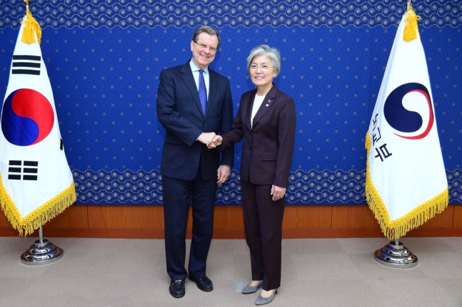 (¼­¿ï=¿¬ÇÕ´º½º) °­°æÈ­(¿À¸¥ÂÊ) ¿Ü±³ºÎ Àå°üÀº 24ÀÏ ¿ÀÈÄ ¼­¿ï µµ·Åµ¿ û»ç¿¡¼­ µ¥À̺ñµå ÇØ¸®½º ¹Ì±¹ À¯ÅÂÀÎÀ§¿øÈ¸(AJC) »ç¹«ÃÑÀåÀ» Á¢°ßÇϰí ÃÖ±Ù Çѹݵµ Á¤¼¼¿Í Çѹ̵¿¸Í µî¿¡ ´ëÇÑ ÀǰßÀ» ±³È¯Çß´Ù°í ¿Ü±³ºÎ°¡ ¹àÇû´Ù. 2019.4.24. [¿Ü±³ºÎ Á¦°ø=¿¬ÇÕ´º½º]