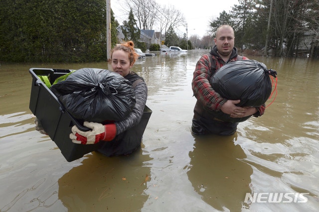 ¡¼¸óÆ®¸®¿Ã=AP/´º½Ã½º¡½28ÀÏ(ÇöÁö½Ã°£) È«¼ö°¡ ³­ ij³ª´Ù Äùº¤ÁÖ ¸óÆ®¸®¿Ã¿¡¼­ 40km ¶³¾îÁø »ýÆ® ¸¶¸£Æ® ½´ ¸£ ¶óÅ© ÀÚÄ¡±¸ ÁֹεéÀÌ »ýÇÊǰÀ» µé°í ¹°¿¡ Àá±ä µµ·Î¸¦ Áö³ª°í ÀÖ´Ù. 2019.04.29.