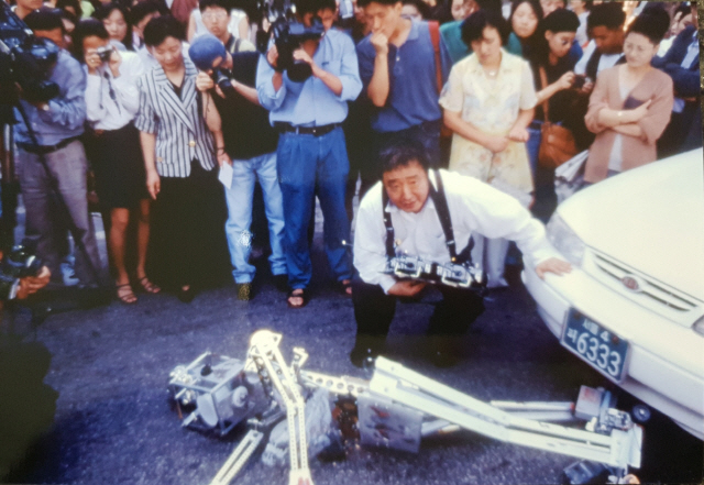 ¹é³²ÁØÀÌ 1995³â ¼¿ï ¹Ú¿µ´öȶû¿¡¼ ¿¸° °³ÀÎÀü¿¡ ¸ÂÃç »õ·Î Á¦ÀÛÇÑ ·Îº¿ ¡®K-567¡¯ÀÌ Ã»´ãµ¿ ´ë·Î¿¡¼ ÀÚµ¿Â÷¿¡ Ä¡¾î ¡®Á×°Ô¡¯ ÇÏ´Â ¡®±æ À§ÀÇ ·Îº¿¡¯ ÆÛÆ÷¸Õ½º¸¦ ÆîÄ¡°í ÀÖ´Ù. /»çÁøÁ¦°ø=¹Ú¿µ´öȶû