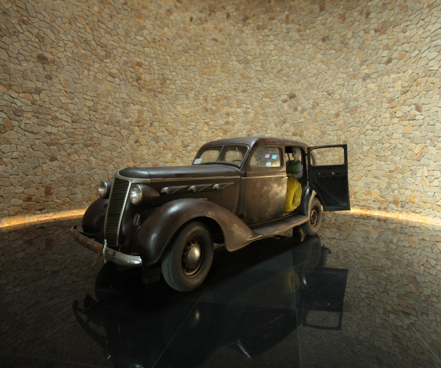 Áö±ÝÀº 1993³â ´ëÀü¼¼°è¿¢½ºÆ÷(EXPO) ¶§ ¼±º¸¿´´ø ¡®1936 µ¥¼ÒÅä(DESOTO)¡¯°¡ Àü½Ã ÁßÀÌ´Ù. Ŭ·¡½Ä ÀÚµ¿Â÷ ¾È¿¡ ÇѺ¹À» Â÷·ÁÀÔÀº ¸¶³×Å·°ú »óü°¡ ºê¶ó¿î°üÀ¸·Î ÀÌ·ïÁø TV·Îº¿ÀÌ ³ª¶õÈ÷ ¾É¾ÆÀÖ´Â ¡®ÀÚµ¿Â÷ Á¶°¢¡¯ÀÌ´Ù. 1936³â ¸ðµ¨ÀÎ µ¥¼ÒÅä Â÷·®ÀÇ ¾Õ ¹üÆÛ¿¡´Â ¹é³²ÁØÀÌ ÁÖâÇß´ø ¡®ÀüÀÚÃÊ(õ±)°í¼Óµµ·Î¡¯¶ó´Â ±Û¾¾°¡ ÅÁ÷ÇÏ°Ô ±×·ÁÁ® ÀÖ´Ù. ¹é³²ÁØÀº ÀÏÂïÀÌ 1974³â¿¡ ÀÎÅÍ³Ý °³³äÀÎ ¡®ÀüÀÚÃʰí¼Óµµ·Î(Electronic Super Highway)¡¯¸¦ Âø¾ÈÇØ ´º¿å ·ÏÆç·¯Àç´Ü¿¡ Á¦¾ÈÇß´Ù.